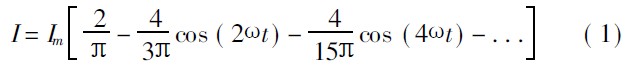 從上式可以看出, I 除了一直流分量之外, 還包含一係列的高頻諧波的交流分量(如圖2 所示波形)。這樣不但影響了電源線上的電流, 並使電流發生畸變, 同時也產生射頻幹擾。