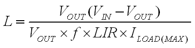 其中,VIN為輸入電壓,VOUT為輸出電壓,f為轉換器的開關頻率,LIR為電感紋波電流與設計的最大負載電流之比,ILOAD(MAX)為最大負載電流。