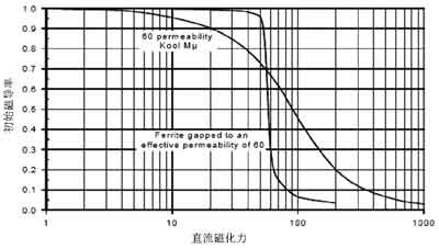 此外,電感磁芯材料也是選擇電感時應該加以考慮的重要因素。常用的磁芯材料分為兩大類,一類是粉狀磁芯,以鐵粉芯、High Flux高磁通磁粉芯以及Kool Mμ為代表;另一類是鐵氧體磁芯。兩種磁芯材料各有優缺點,設計人員在選擇的時候,應根據成本、性能、尺寸等因素綜合考慮進行選擇。相對粉狀磁芯電感,鐵氧體磁芯的電感具有較低的磁芯損耗,同時具有較高的開關頻率(高達MHz)。因此,鐵氧體磁芯通常是此類應用的最佳選擇。當然,鐵粉磁芯也有其優越性,例如鐵粉磁芯的成本相對鐵氧體要低得多;另外,粉狀磁芯的電感隨著流過電感的直流偏置電流的變大要下降得緩慢些,相當於具有“軟”飽和特性,而鐵氧體磁芯的電感值在飽和以後就會迅速下降(見圖1),因此在設計的時候需要留有更多的餘量,防止電感出現飽和。如圖1所示,粉狀磁芯的電感值隨著負載電流的增大下降相對緩慢。鐵粉磁芯往往是用於一些對功耗要求不甚敏感,開關頻率也不高(<200kHz),但注重成本的應用場合。
