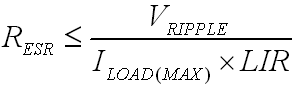 選擇輸出電容應考慮到兩點。一是輸出電容的容值;二是輸出電容的等效串聯電阻(ESR)。電容應具有一定的容值,以確保輸出的穩定。ESR 必須足夠低,以降低輸出電壓的紋波。參考公式2。輸出電容的ESR大小取決於能接受的輸出紋波電壓。降壓控製器的紋波電壓大小大約等於輸出電容的ESR乘以電感的紋波電流。