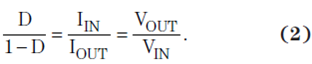 假設 100% 效率占空比 D,用於 CCM 運行的 ZETA 轉換器,其為: