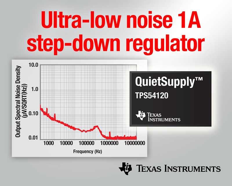 日前,德州儀器 (TI) 宣布推出最新係列穩壓器,其可在不影響效率及電源性能的情況下,提供業界最低噪聲的 1 A 開關電源,從而可充分滿足當前噪聲敏感型醫療、工業以及電信設計在峰值性能下正常工作而對平穩安靜電源的需求。TI QuietSupply™ 穩壓器係列的首款產品 TPS54120 與其它電源轉換器件相比,可將開關噪聲銳降達 99%,並可幫助最大限度提高精確數據轉換器與放大器以及靈敏時鍾分配電路的性能,充分滿足電信、測試設備以及高端音頻視頻設備等應用的使用需求。
