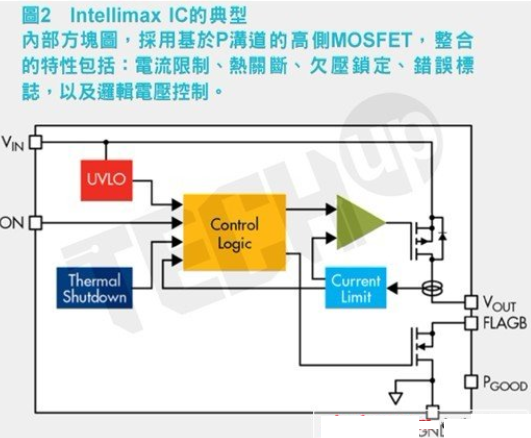 快捷半導體的Intellimax產品組合能夠滿足智慧型MOSFET的功能性要求。圖2顯示了其標準的內部方塊圖,雖然基於所需要的特性,它會根據設備而有所不同。此圖以P溝道為基礎,高側電路位於Vin和Vout間。引腳數量已減至最少,以便讓封裝尺寸保持愈小愈好。而涉及到封裝方麵,這些元件可以採用小至1mm×1mm的晶片級封裝(Chip Scale Packaging,CSP),或者採用廣為使用中的無引線uPak封裝,也稱為MLP。對於塬型(protype)的需要及空間限製較少的設計而言,也可以使用SC70、SOT23和SO8。