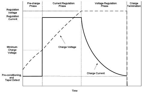 就鎳基可充電電池而言,快速充電終止基於電壓或溫度。如圖 1 所示,典型的電壓終止方法是峰值電壓探測,在峰值時即每個電池的電壓在 0~-4mV 範圍內,快速充電被終止。基於溫度的快速充電終止方法是觀察電池溫度上升率 來探測完全充電。典型的 率為 1℃/每分鍾。