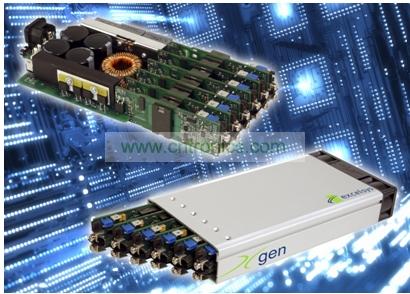 一是機殼(powerPacs)。作用是將全範圍輸入的市電進行整流及PFC功率因素校正,輸出360V直流電壓。目前機殼有兩個大類9個係列的產品可供選擇,兩類產品分別提供4插槽封裝和6插槽封裝,4插槽輸出功率範圍為200W-750W,6插槽輸出功率範圍為400W-1340W,9個係列分別涵蓋普通應用、低噪音、高溫、醫療認證、震動、遠程控製等不同應用。