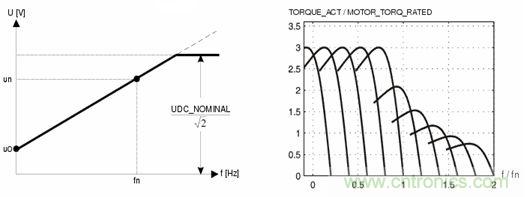 當(dang)電(dian)機(ji)在(zai)額(e)定(ding)頻(pin)率(lv)以(yi)上(shang)調(tiao)速(su)時(shi),逆(ni)變(bian)器(qi)的(de)輸(shu)出(chu)頻(pin)率(lv)可(ke)以(yi)繼(ji)續(xu)升(sheng)高(gao),但(dan)是(shi)輸(shu)出(chu)端(duan)電(dian)壓(ya)隻(zhi)能(neng)維(wei)持(chi)在(zai)額(e)定(ding)輸(shu)入(ru)值(zhi),此(ci)時(shi)定(ding)子(zi)磁(ci)通(tong)和(he)調(tiao)速(su)頻(pin)率(lv)成(cheng)反(fan)比(bi)下(xia)降(jiang),異(yi)步(bu)電(dian)機(ji)的(de)工(gong)作(zuo)狀(zhuang)態(tai)等(deng)同(tong)於(yu)直(zhi)流(liu)電(dian)機(ji)的(de)弱(ruo)磁(ci)升(sheng)速(su),電(dian)機(ji)的(de)輸(shu)出(chu)扭(niu)矩(ju)隨(sui)磁(ci)通(tong)變(bian)化(hua),輸(shu)出(chu)扭(niu)矩(ju)隨(sui)速(su)度(du)增(zeng)加(jia)逐(zhu)漸(jian)變(bian)小(xiao)為(wei)恒(heng)功(gong)率(lv)工(gong)作(zuo)模(mo)式(shi)。