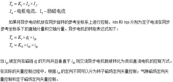 矢量控製是指根據電機運行狀況同時控製輸出量的幅值和相位。其基本的工作原理是通過電機內以同步轉速旋轉的參考d-q參考坐標係的數學方法,解藕出控製電機勵磁方向的電流分量Id和控製電機的轉矩方向的分量Iq,從而可以將異步電機的控製方法等效為傳統直流電機的控製。