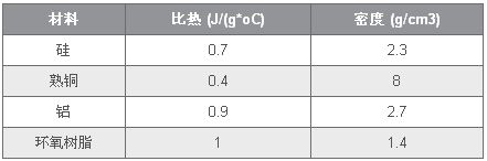 表1列出了一些常見材料及其比熱和密度,其或許有助於建模熱插拔器件內部的散熱電容。
