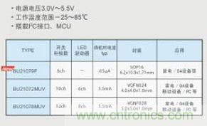 日本知名半導體製造商羅姆(總部位於日本京都)開發出取代家電和OA設備等的機械式ON/OFF開關的、構築電容式觸控開關的控製器IC“BU21079F”。