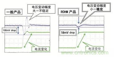 圖4:負載電流急劇變動也可用最小限的電壓降實現高速負載瞬態響應