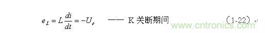 上式中Uo前的負號,表示K關斷期間電感產生電動勢的方向與K接通期間電感產生電動勢的方向正好相反。
