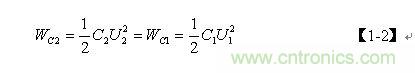 上式中, Wc2為次級線圈分布電容C2存儲的能量, Wc1為C2等效到初級線圈後的分布電容C1存儲的能量;U1、U2分別為初、次級線圈的電壓,U2 = nU1,n = N2/N1為變壓比,N1 、N2分別為初、次級線圈的匝數。由此可以求得C1為: