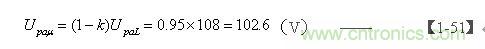 等於104 V,當最高輸入電壓為360V時(對應交流輸入電壓為AC253V),根據【1-39】式可求得: