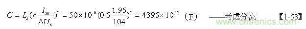 把【1-53】、【1-58】式的計算結果:C = 4395P,Ton = 18uS ,代入【1-57】式: