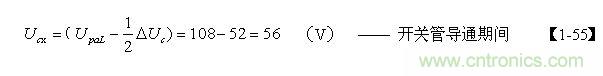 當考慮電阻R對電容器C充電的分流作用,以及開關管由導通到完全關斷期間,漏極電流對電容器C充電的分流作用時,根據【1-36】式,假設分流係數r = 0.5 ,則【1-52】式還可改寫為: