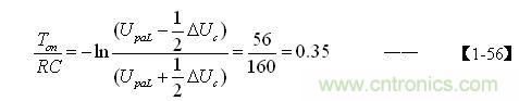 當RC的值與開關管導通時間Ton完全相等時,【1-46】式的值正好等於0.37,與【1-56】式的結果非常接近。或者當紋波電壓