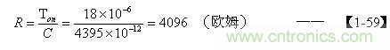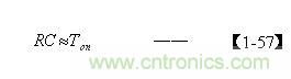 把由【1-52】和(2-73)式求出電容器C的結果,以及根據【1-25】式求出的Ton值,代入【1-57】式後即可求出電阻R的值。