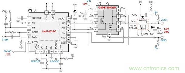 (3) MOSFET — 功率半導體器件是改善效率與尺寸的基礎。以功率塊 NexFET™ 係列為例,其被廣為稱道的優勢在於通過垂直疊加的方式創新地將高側及低側 MOSFET 進行聯合封裝。在頻率比例損耗值得關注時,需要低 QG、QRR 與 QOSS 電荷。此外,低 RDS(ON)、大電流銅夾、開爾文柵極連接以及接地選項卡也很重要。