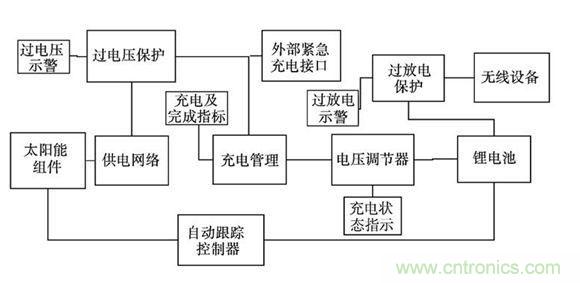 現有的光伏電池,單體的輸出電壓都很低(在1V 以下) ,本ben設she計ji中zhong,將jiang多duo個ge光guang伏fu電dian池chi相xiang串chuan聯lian,組zu成cheng太tai陽yang能neng組zu件jian。通tong過guo可ke以yi自zi動dong調tiao節jie占zhan空kong比bi的de供gong電dian網wang絡luo保bao證zheng在zai光guang照zhao強qiang度du變bian化hua和he負fu載zai變bian化hua時shi,輸shu出chu電dian壓ya基ji本ben穩wen定ding,為wei充chong電dian管guan理li芯xin片pian提ti供gong穩wen定ding的de電dian壓ya輸shu入ru。通tong過guo對dui供gong電dian網wang絡luo的de副fu邊bian電dian壓ya監jian測ce,保bao護hu充chong電dian管guan理li芯xin片pian不bu因yin電dian壓ya過guo高gao而er損sun壞huai。通tong過guo對dui電dian池chi兩liang端duan的de電dian壓ya監jian測ce,保bao證zheng鋰li電dian池chi不bu會hui因yin過guo放fang電dian而er損sun壞huai。由you於yu無wu線xian示shi功gong儀yi及ji其qi中zhong繼ji網wang絡luo節jie點dian的de供gong電dian要yao求qiu是shi313V,采用低噪聲、高速度的CMOSxingdianyatiaojieqi。zaizidonggenzongkongzhiqizuoyongxia,shizhongbaochiquantianhougenzongtaiyang。weilefangzhiyinlianxuyinyutianerdaozhidetaiyangnenggongdianbuzu,shejiyingjichongdiandianlu,chongdianqijian,wuxianshigongyijiqijiedianzhengchangyunxing。jutixitongshejimokuairutu1 所示。