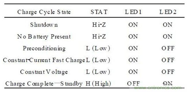 表1:MCP73831 電路設計中指示燈的邏輯關係