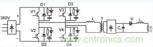 此處將限流電感L放在變壓器原邊。這除了能實現功率管的零電壓開通外,例如在V1,V4關斷後,由於L的續流作用,D2,D3導通,則V2,V3可實現零電壓開通;還可分擔變壓器原邊繞組上的壓降,減少變壓器匝數,進而減小變壓器磁心。