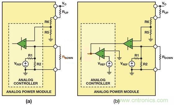 (b)帶有固定內部基準電壓的模擬控製器調整模擬電源模塊的輸出電壓