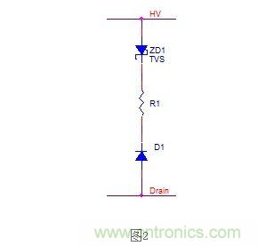 由此式即可計算出R2的大小,亦可得出R2的功率要求,一般要保證R2的功率要大於此功率(E*f)的1.5-2.5倍。若為TVS則,TVS的功率也要和電阻的功率要求一樣,要大於1.5-2.5*E*f。