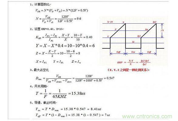 3、原邊電流的計算,其實是參考了《開關電源手冊》,見p156--p180,110W反激變壓器設計,原文中定義的原邊電流,IP2=3*IP1,即KRP=0.66。本文中用X、Y、Z來描述原邊電流,即固定X=10,Y為任意值,KRP也就為任意值。