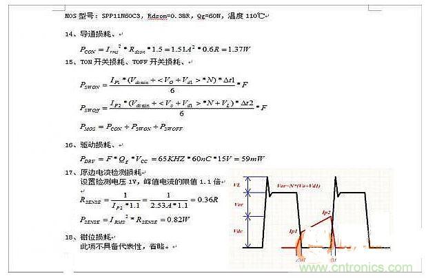 (關於開關損耗和導通損耗,上麵的計算方法應該是正確的,參考《精通開關電源》第5章。最有可能會出現的問題是,測量的準確性如何,因為這會導致計算值與實際值相差2--5倍。)