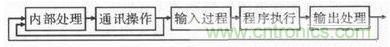 在延遲控製中,傳統的繼電器控製技術依靠設備的滯後性實現,定時精度較差,在操作時不易調整時間。而PLC監視控製是時鍾脈衝由晶體振蕩器引起的,可操控時間,且精度較高。PLC控製雖與微電腦技術相似,但工作方式卻不同。PLC技術采用循環掃描,而微機則采用鍵盤掃描,圖1是PLC技術的工作掃描方式。