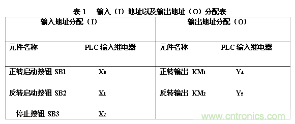 由上圖可知,PLC程序在使用中軟件互鎖功能並不可靠。因此,需在硬件總添加互鎖,地址分配表如表1所示,除了在硬件中添加互鎖外,還需做一個熱保護裝置。