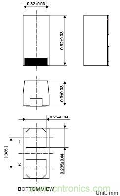 ●使用SOD-962封裝的最佳高密度安裝(SL2,0.63×0.32mm)