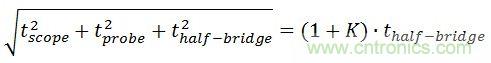 為確保儀器和探頭不會對測量造成重大影響,我們可以假設,能夠用和方根法把探頭、示波器和半橋的上升時間加起來。盡管這種方法並不總是正確,但我們在最初估計中可假設這一關係成立。