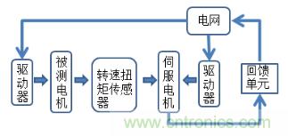 伺服電機可以進行電機對拖,公共直流母線采用單獨的整流/回饋裝置,為係統提供電能,調速用逆變器直接掛接在直流母線上,當係統工作在電動狀態時,逆變器從母線上獲取電能;當負載被被測電機反向拖動的時候,伺服電機將會變成發電機,能量通過母線及回饋裝置直接回饋給電網,以達到節能、提高設備運行可靠性等目的。