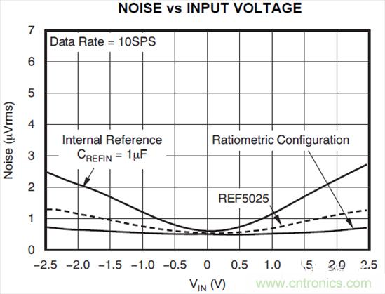 圖2:ADC和基準噪聲與輸入電壓之間的關係