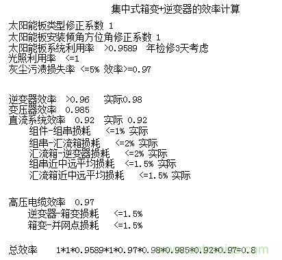 以上公式計算可參考中國質量認證中心技術規範《並網光伏電站性能監測與質量評估技術規範》(申請備案稿)和國標規範《GB50797-2012光伏發電站設計規範》