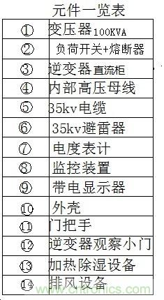 2、交流電經100KVA變壓器1,直接升壓至35KV,變壓器、高壓隔離開關熔斷器、逆變器、避雷器等裝在一套箱變內。