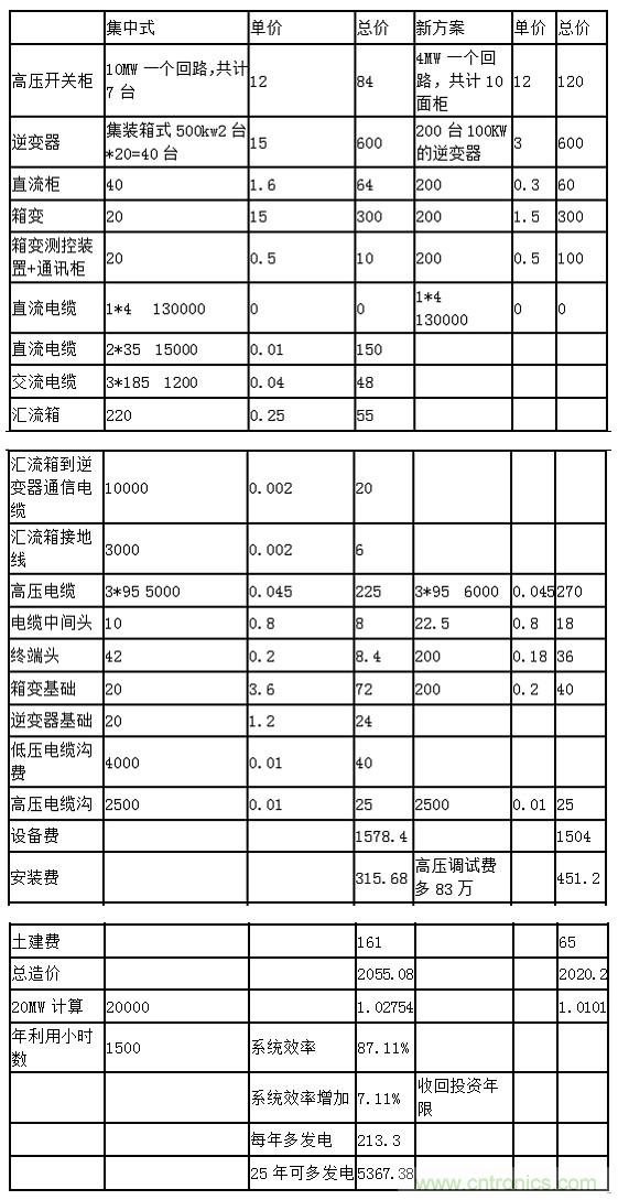 9、整體發電效率提高到87%。比普通集中式逆變器-箱變係統高7%。以20MW安裝容量1500年運行小時考慮,25年可多發電5400多萬度。見下圖3