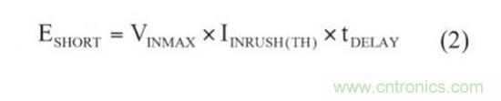 根據係統設計需要,通過計算保護器件在湧入、輸出短路和突然電路斷開情況下,在保護器件上出現的峰值能量,下麵的方程式將有助於選擇一個具有足夠雪崩能量額定值的MOSFET。