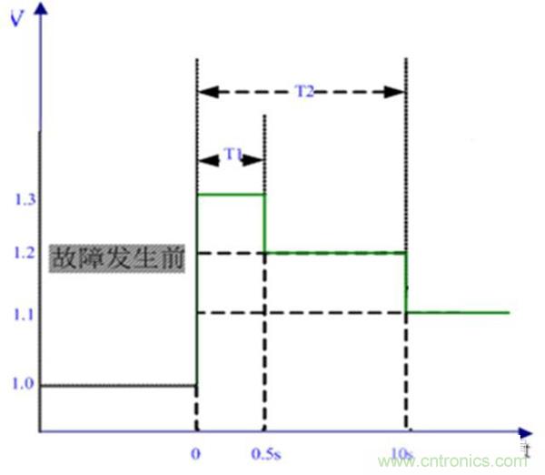 1.2pu ≤UT≤1.3pu,應至少持續運行0.5s