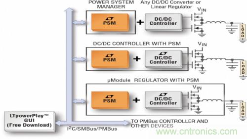 由於要麵對這些挑戰,因此淩力爾特決定開發一個 PSM 產品線,其包括具集成型功率 FET 柵極驅動器和豐富齊全之電源管理功能 (通過基於 I2C 的 PMBus 來使用) 的同步降壓型 DC/DC 控製器。這些功能包括高精度基準和可提供 ±0.5% DC 準確度的溫度補償型模擬電流模式控製環路、經過校準以不受工作條件之影響的簡易型補償、逐周期電流限製、快速和準確的均流、以及針對線路電壓和負載瞬變的響應,並不存在任何與 ADC 量化相關聯的誤差,此類誤差是采用 “數字” 控製之產品中所常見的。該產品線的某些產品還內置了可提供輸入和輸出電壓及電流、占空比和溫度之數字回讀的 16 位數據采集係統。另外,還整合了通過一個中斷標記及一個 “黑匣子” 記錄器 (其負責存儲發生某種故障之前的轉換器工作狀況) 實現的故障記錄功能。