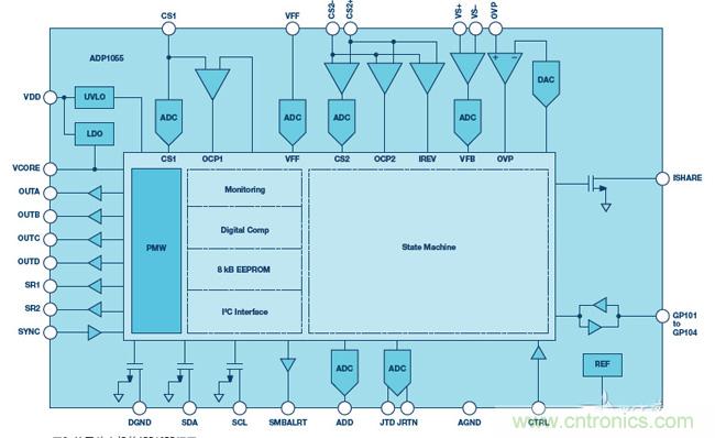 圖2. 基於狀態機的ADP1055框圖