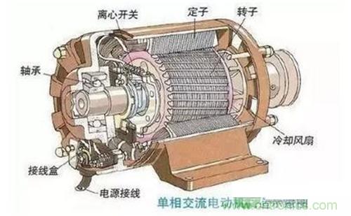 以下是單向交流電動機的構造: