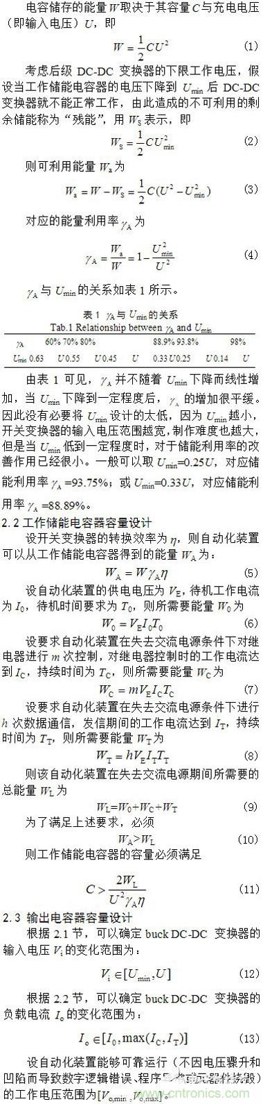 【導讀】為了在失電情況下繼續維持智能終端設備短暫工作,提出了一種基於電容儲能的自動化終端備用開關電源解決方案。論述了電路組成、下限工作電壓選取和儲能電容器容量設計方法。