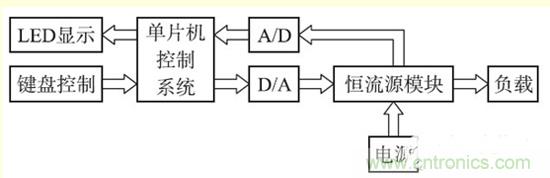 本論文設計了基於單片機的數控恒流源,該係統由恒流源主電路和單片機最小係統組成,其中單片機最小係統主要由單片機控製單元、A/ D 和D/ A 轉換模塊以及負載及鍵盤顯示模塊組成,係統結構框圖如圖1所示。單片機控製係統以單片機AT89S52 為核心,高精度12 bit A/ D 芯片AD1674 實現采樣輸入,12 bitD/ A 芯片DAC1230 產生控製輸出,實現了輸出電流的精確設定和檢測,係統還設置了串口通訊功能。