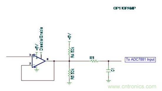 ADS7881的最低有效位 (LSB) 大約是 610mV。OPA836最大輸入失調電壓達 500uV,可充分滿足 12 位應用需求。