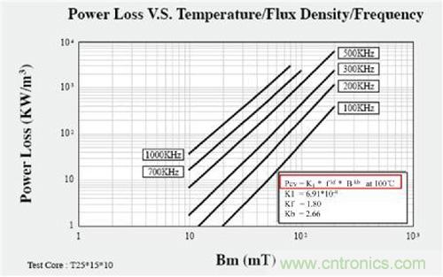 如圖4所示,變壓器鐵損是和開關頻率的kf次ci方fang成cheng正zheng比bi,又you與yu磁ci性xing溫wen度du的de限xian製zhi有you關guan,所suo以yi隨sui著zhe開kai關guan頻pin率lv的de提ti高gao,高gao頻pin電dian流liu在zai線xian圈quan中zhong流liu通tong產chan生sheng嚴yan重zhong的de高gao頻pin效xiao應ying,從cong而er降jiang低di了le變bian壓ya器qi的de轉zhuan換huan效xiao率lv,導dao致zhi變bian壓ya器qi溫wen升sheng高gao,從cong而er限xian製zhi開kai關guan頻pin率lv提ti高gao。