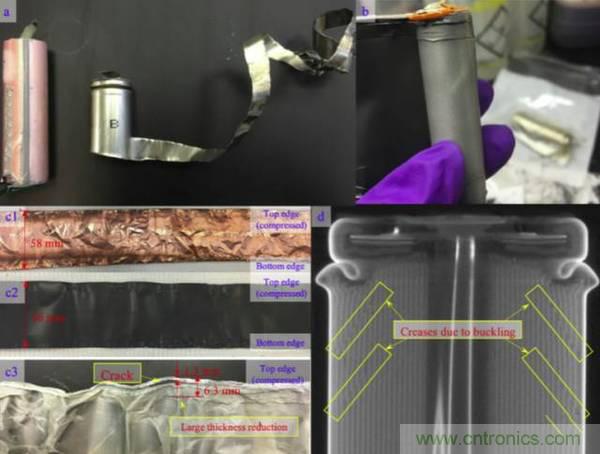 美國麻省理工學院的Juner Zhu等人利用18650電dian池chi研yan究jiu了le在zai發fa生sheng軸zhou向xiang擠ji壓ya的de過guo程cheng中zhong鋰li離li子zi電dian池chi的de發fa生sheng熱re失shi控kong的de機ji理li,並bing利li用yong有you限xian元yuan分fen析xi模mo型xing進jin行xing了le仿fang真zhen分fen析xi,該gai模mo型xing還hai原yuan了le不bu同tong的de軸zhou向xiang壓ya力li對dui鋰li離li子zi電dian池chi造zao成cheng的de影ying響xiang,分fen析xi結jie果guo得de到dao了leCT掃描的驗證,該仿真分析結果發現了兩種可以解釋在擠壓試驗中導致鋰離子電池發生短路原因。