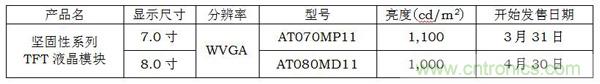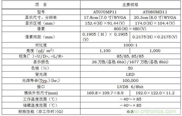 我公司此次推出的工業用彩色TFT液晶模塊堅固性係列新產品7.0寸・8.0寸WVGA TFT液晶模塊具有可承受加速度6.8G的超強耐振性能和-40℃~+85℃的寬廣工作溫度範圍,並以其水平/垂直各170°的(de)超(chao)寬(kuan)視(shi)角(jiao)確(que)保(bao)了(le)各(ge)個(ge)角(jiao)度(du)的(de)可(ke)視(shi)性(xing)。新(xin)產(chan)品(pin)的(de)推(tui)出(chu)進(jin)一(yi)步(bu)擴(kuo)充(chong)了(le)我(wo)公(gong)司(si)產(chan)品(pin)陣(zhen)容(rong),使(shi)得(de)顯(xian)示(shi)屏(ping)的(de)安(an)裝(zhuang)形(xing)式(shi)更(geng)加(jia)靈(ling)活(huo)多(duo)樣(yang),屏(ping)幕(mu)更(geng)加(jia)清(qing)晰(xi),適(shi)用(yong)於(yu)使(shi)用(yong)環(huan)境(jing)嚴(yan)酷(ku)的(de)工(gong)程(cheng)機(ji)械(xie)、農業機械以及工廠自動化設備等。