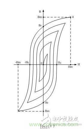 從圖2-16可以看出,當變壓器鐵芯中不存在磁化場時,H和B均為零,即圖2-16中B~H曲線的坐標原點0。隨著磁場強度H的增加,磁通密度B也隨之增加,但兩者之間不是線性關係。當H增加到一定值時,B不再增加(或增加十分緩慢),這說明該變壓器鐵芯的磁化已接近飽和狀態。一般人們都把Hm和Bm分別稱為最大磁場強度和最大磁通密度(對應於圖中a點);而把Hs和Bs分別稱為飽和磁場強度和磁通密度。